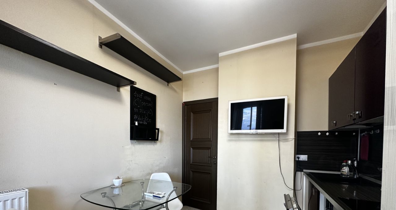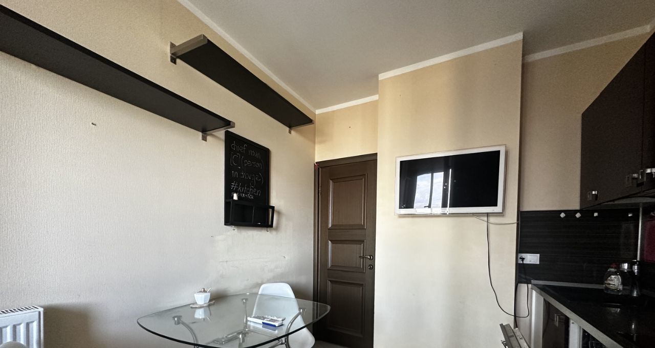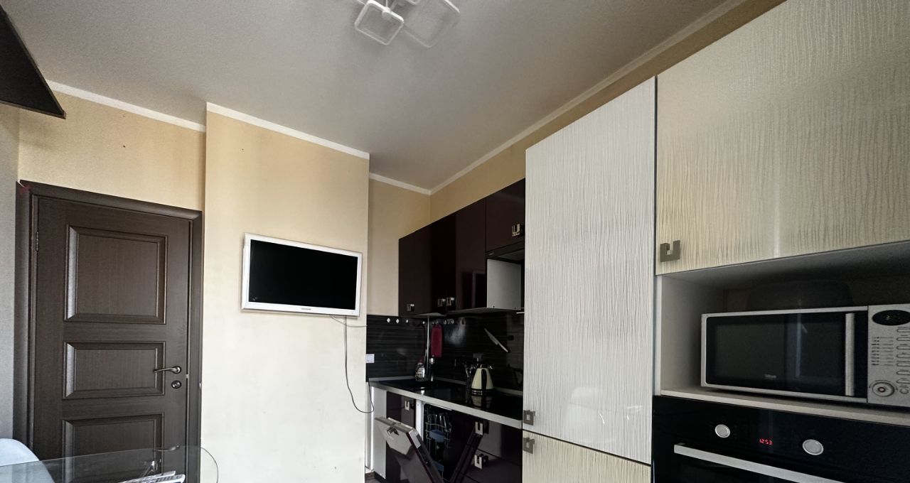 просторная кухня с хорошим кухонным гарнитуром и встроенной техникой (холодильник, посудомоечная машина, варочная панель, духовой шкаф, микроволновка), есть телевизор;
