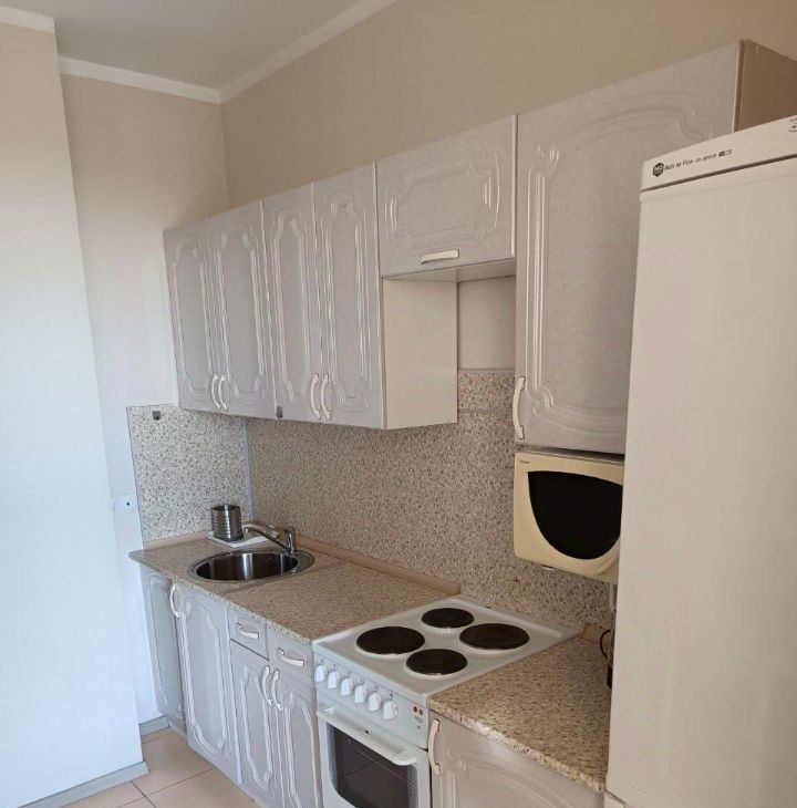Квартира полностью меблирована, есть вся необходимая техника: холодильник, духовой шкаф, варочная поверхность, свч, чайник, стиральная машина, телевизор, пылесос, утюг.