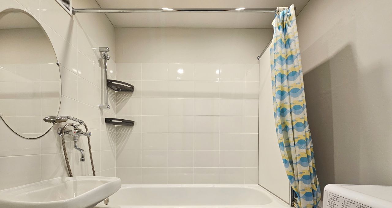 Санузел раздельный, в кафеле. В ванне установлена стиральная машина.