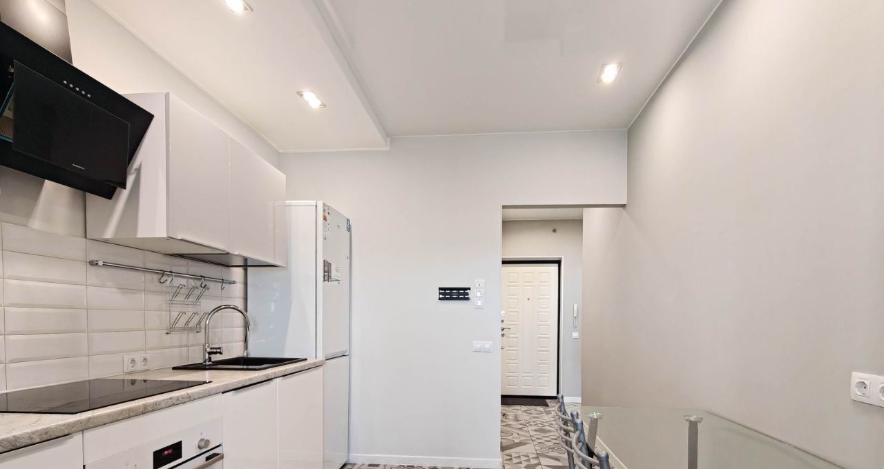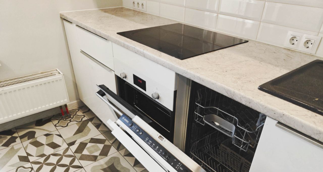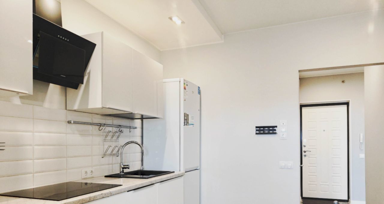 В квартире есть все необходимое для проживания: кухонный гарнитур, места для хранения одежды, кровать и бытовая техника: варочная панель, вытяжка, духовой шкаф, посудомоечная машина, холодильник, стиральная машина.