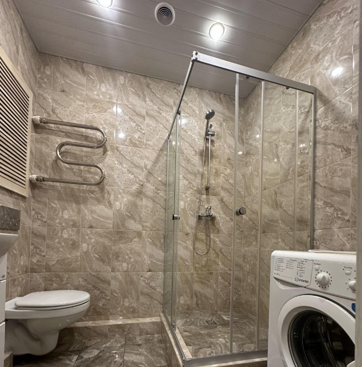 - Современный жилой комплекс: двор без машин, круглосуточная охрана, подземный паркинг(место можно арендовать), магазины и фитнес центр с несколькими бассейнами в цокольных этажах.