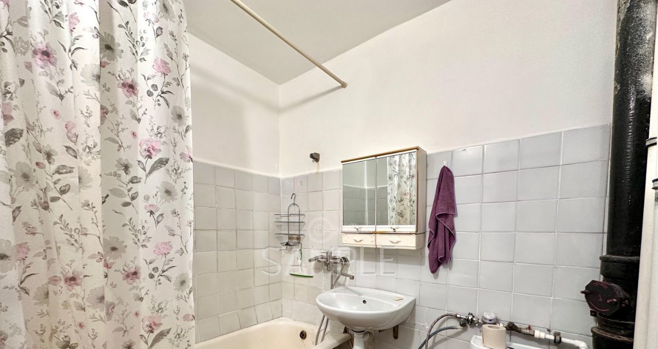 - Санузел с ванной, зеркалом и стиральной машиной;