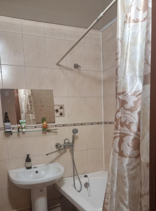 В квартире выполнен дизайнерский ремонт. В наличии вся необходимая мебель как в комнате, так и на кухне. Квартира оснащена современной техникой: кондиционер, холодильник, телевизор и стиральная машина. Санузел совмещённый, оборудован ванной. Также есть балкон, где можно наслаждаться утренним кофе.