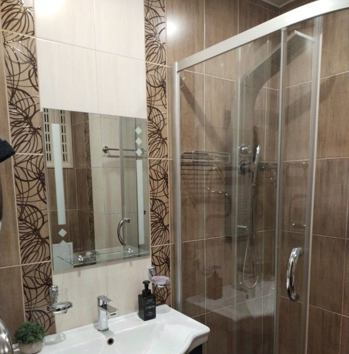 Натяжные потолки, пол подогрев. Большая гардеробная 8 м2, застекленная лоджия.