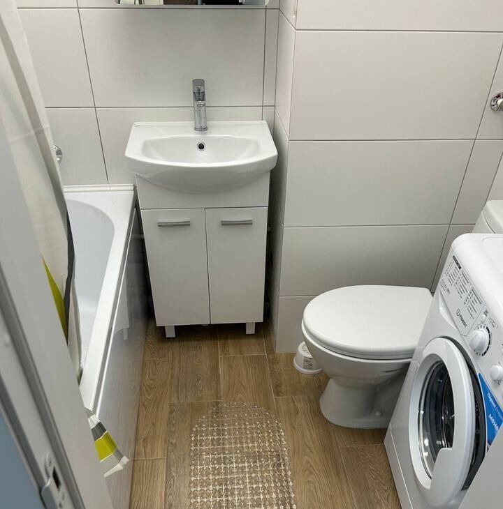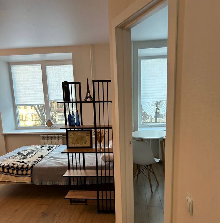 В квартире сделан современный евроремонт. Просторная комната обставлена со вкусом, есть вся необходимая мебель для комфортной жизни. Кухня оборудована холодильником, а в ванной — стиральная машина. Высота потолков 2,5 метра создаёт ощущение простора и света. Санузел совмещённый, выполнен в нейтральных тонах, что добавляет дополнительного уюта. В квартире проведён интернет, поэтому вы всегда будете на связи.