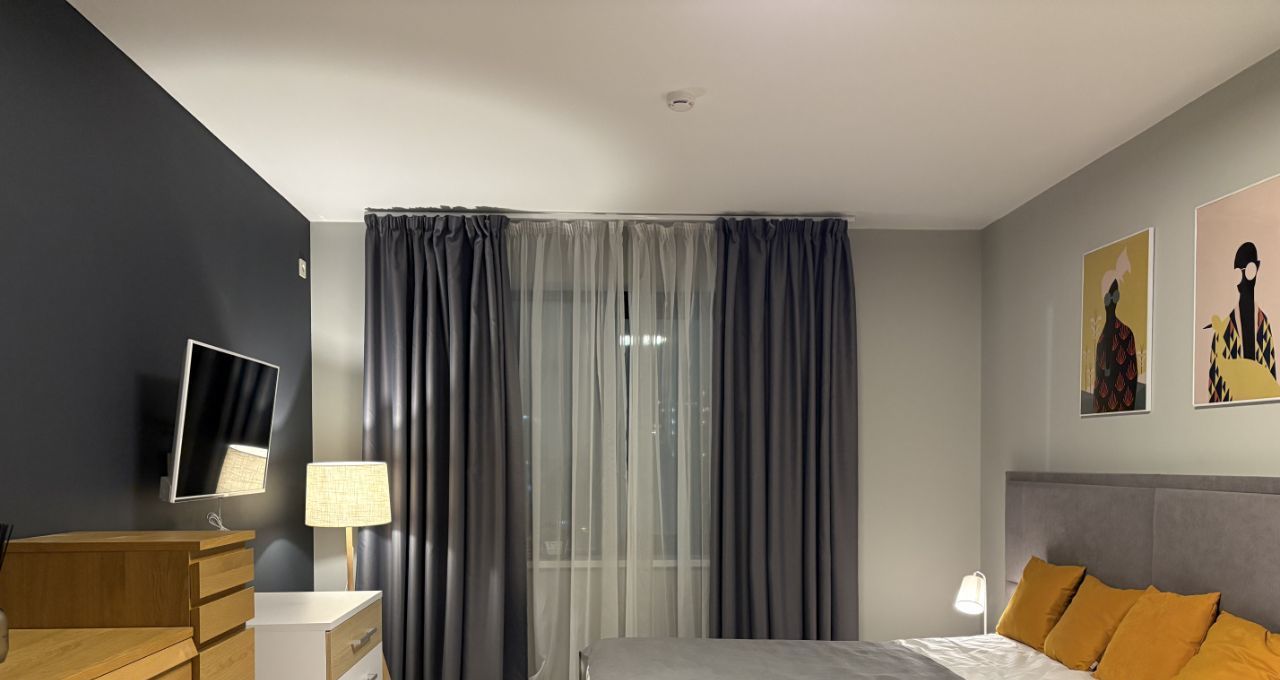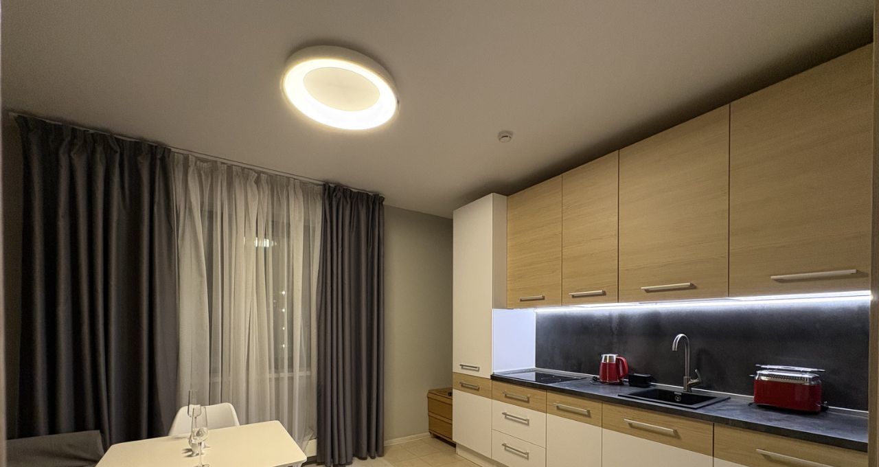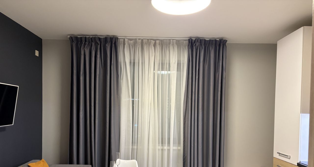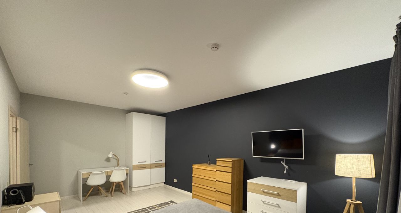 Квартира с дизайнерским ремонтом, полностью готова к комфортному проживанию. В комнате и на кухне есть необходимая мебель. Встроенная техника включает холодильник, посудомоечную машину, стиральную машину и телевизор. Ванная комната оборудована ванной. Окна выходят во двор, что обеспечивает тишину и уют.