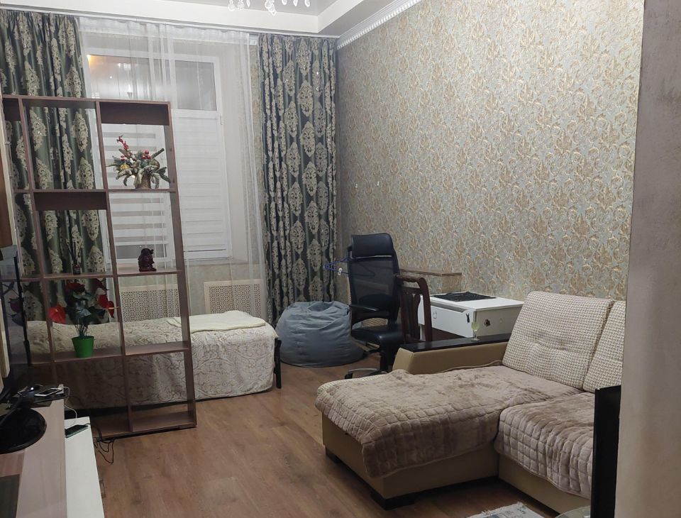 В квартире сделан евроремонт, поэтому обстановка современная и комфортная. В комнате и на кухне есть вся необходимая мебель. Окна выходят как на улицу, так и во двор, поэтому всегда можно выбрать более тихое или светлое место. Ванная комната оборудована ванной, что позволяет расслабиться после долгого дня. Из техники в распоряжении жильцов: холодильник, телевизор и стиральная машина, поэтому можно сразу заезжать и жить.