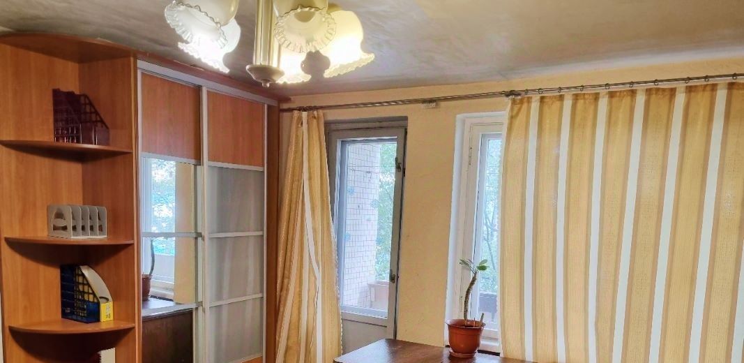 Комната 17 м ², кухня 7 м ², есть большая лоджия и кладовка. Окна выходят во двор.