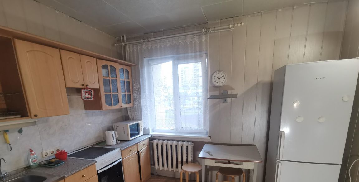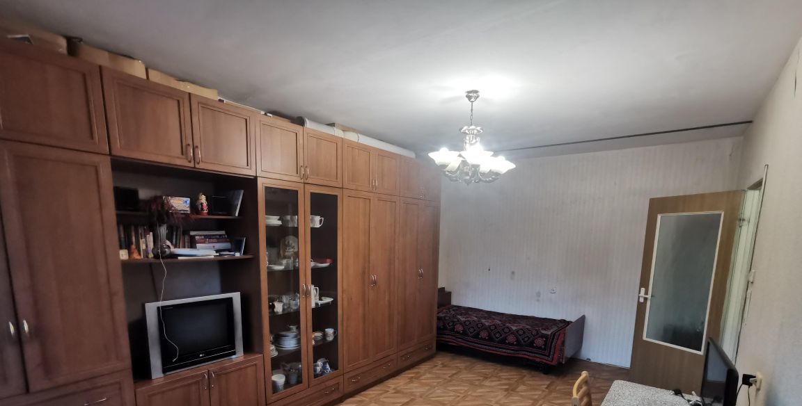Продаётся светлая просторная однокомнатная квартира с большой кухней 10 м2 и гостиной 20.2 м2. Окна выходят на южную солнечную сторону, во двор, обеспечивая тишину и спокойствие. Можно сразу въехать и жить, а можно сделать ремонт что даёт возможность оформить её по своему вкусу. Кухня оборудована необходимой мебелью и техникой, включая плиту и микроволновую печь. В комнате установлен вместительный шкаф-купе. В прихожей есть много мест для хранения и шкаф для одежды.
