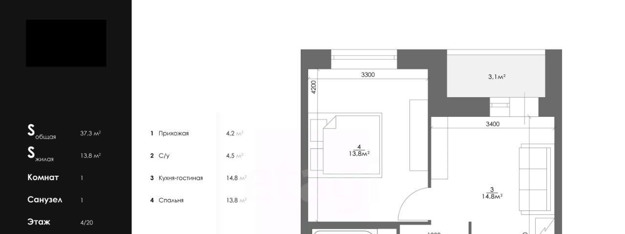 1-комнатная квартира: Санкт-Петербург, Железнодорожный проспект, 14к1 (34.6 м²)