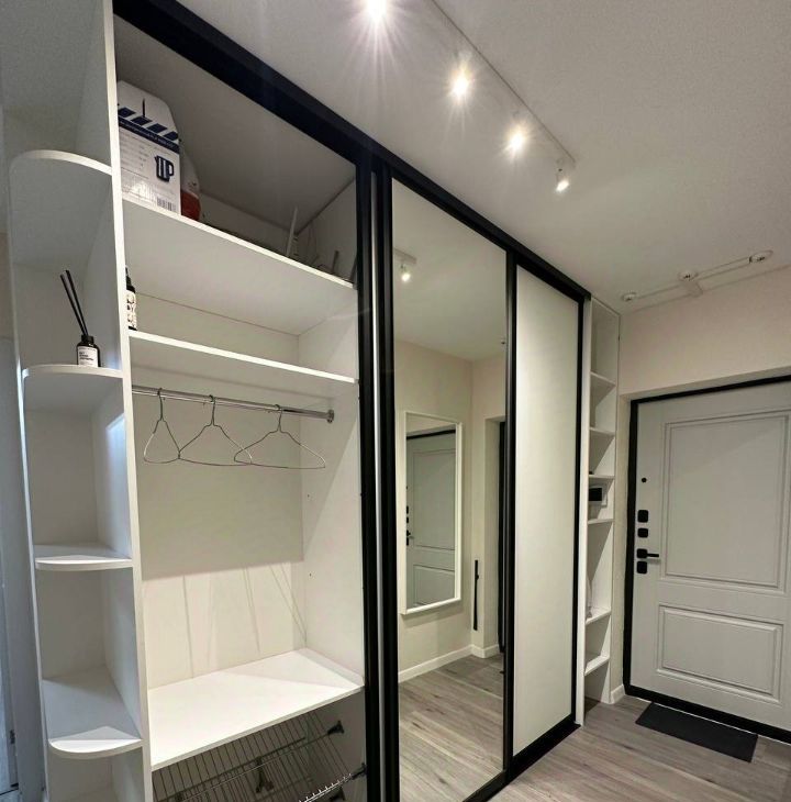 В коридоре установлен вместительный шкаф-купе, продуманы зоны хранения. Телевизор отсутствует, при необходимости возможна его покупка по договоренности.