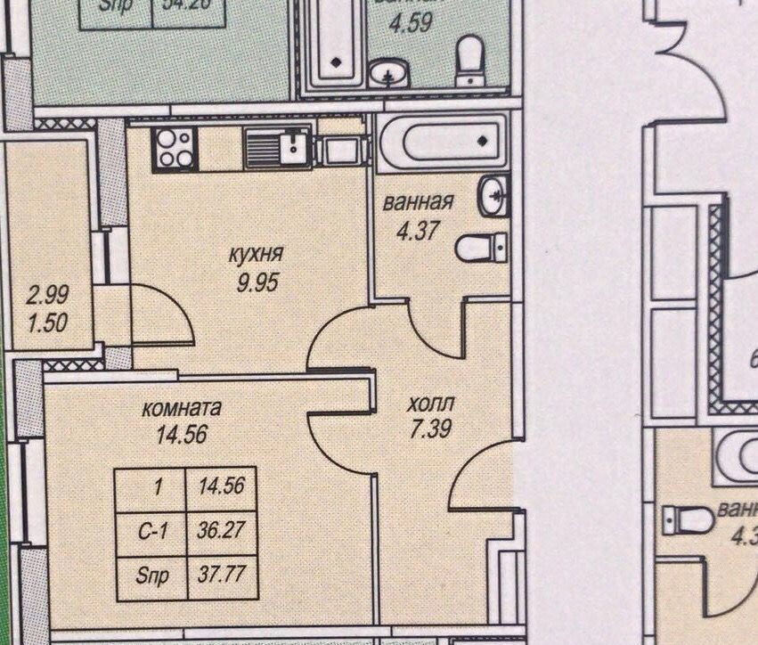 1-к кв. Санкт-Петербург просп. Юнтоловский, 45к2 (37.77 м²)