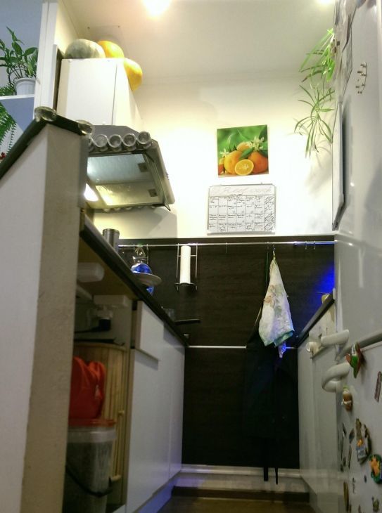 Из техники: варочная поверхность, свч, посудомойка, вытяжка, холодильник.