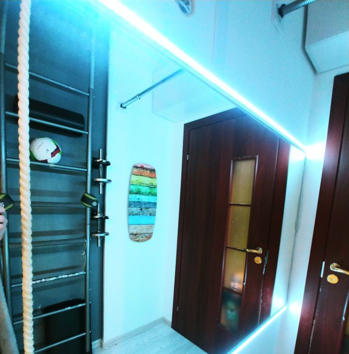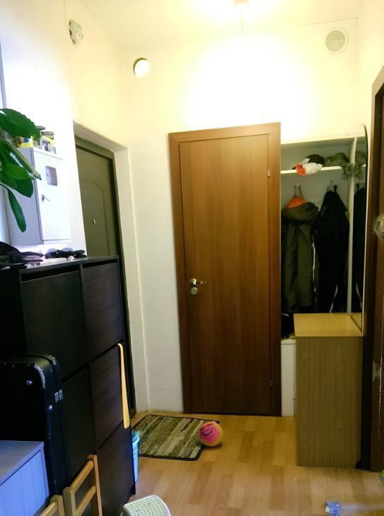 При входе отделена гардеробная с вместительными полками и штангами для одежды и обуви.