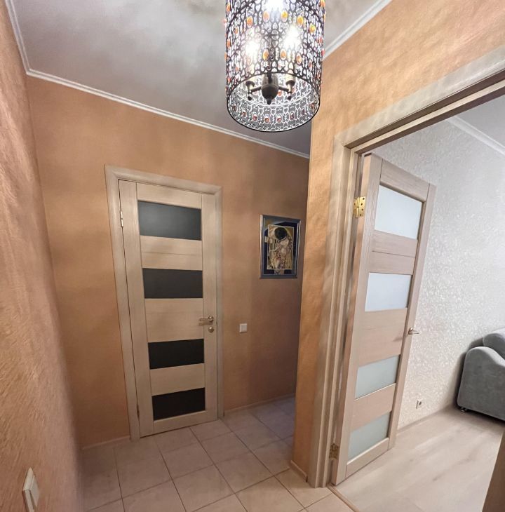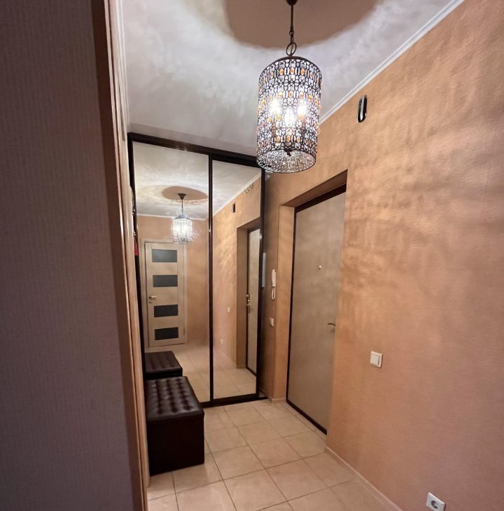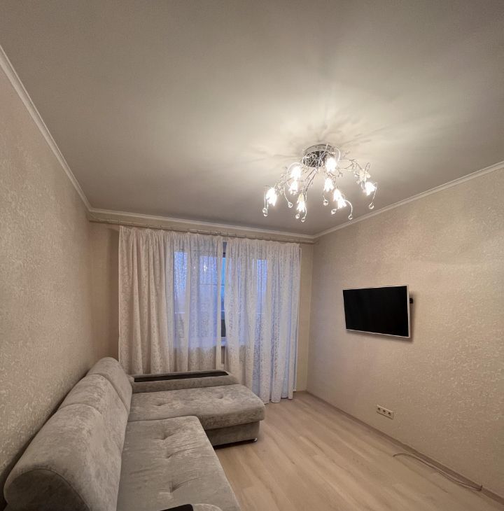 Сдается уютная теплая квартира на 7 этаже монолитно-кирпичного дома. Просторная кухня площадью 10 м² оборудована современной техникой, включая холодильник и плиту. В комнате установлен вместительный шкаф и удобный диван, а также телевизор.