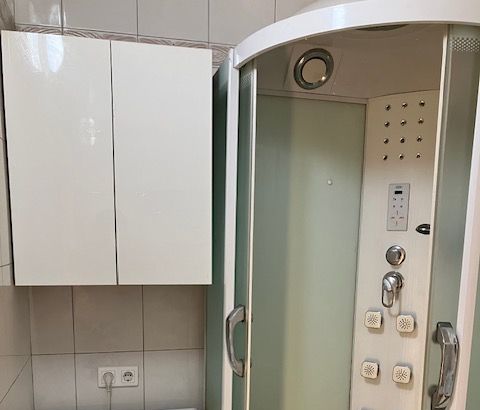 В кухне: гостевое раскладное кресло-кровать; в комнате- раскладной ортопедический диван на 2-х чел.; в санузле- Душевая кабина с массажем, паром, тропическим душем и радио; большие, вместительные шкафы в комнате и в коридоре; лоджия, площадью- около 3 м, застеклена.