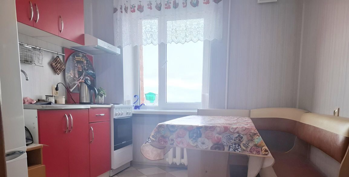 Мебель: диван 2-х спальный, шкаф купе встроенный, прихожая, кухонный гарнитур, стол, стулья.