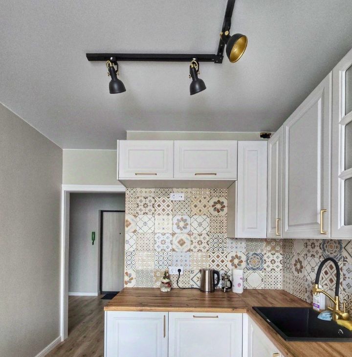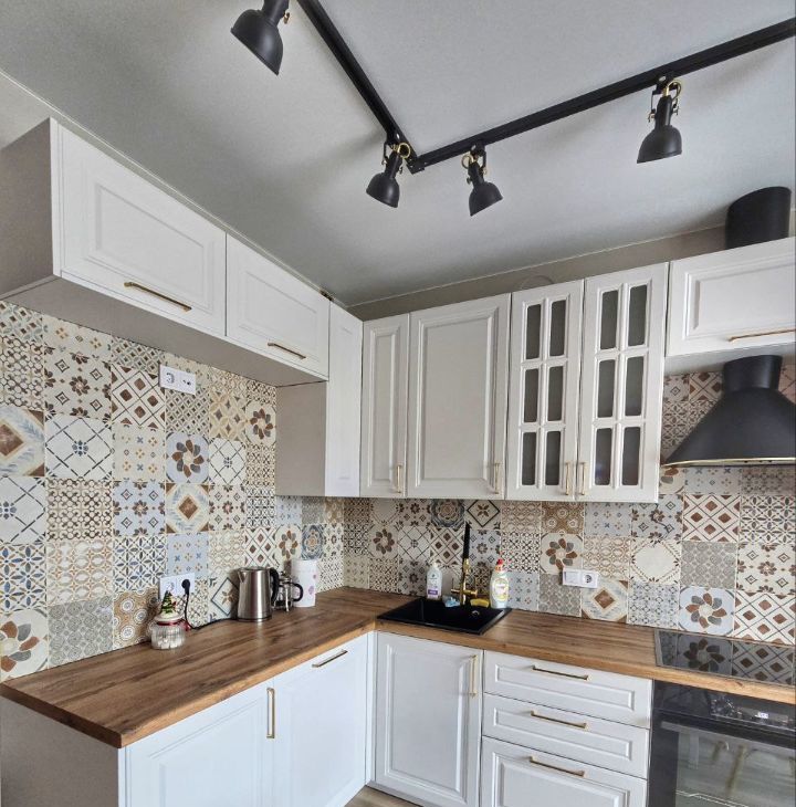 кухонный гарнитур изготовлен на заказ, оснащён встроенной техникой: посудомоечная машина, встроенный холодильник, духовой шкаф, варочная поверхность;