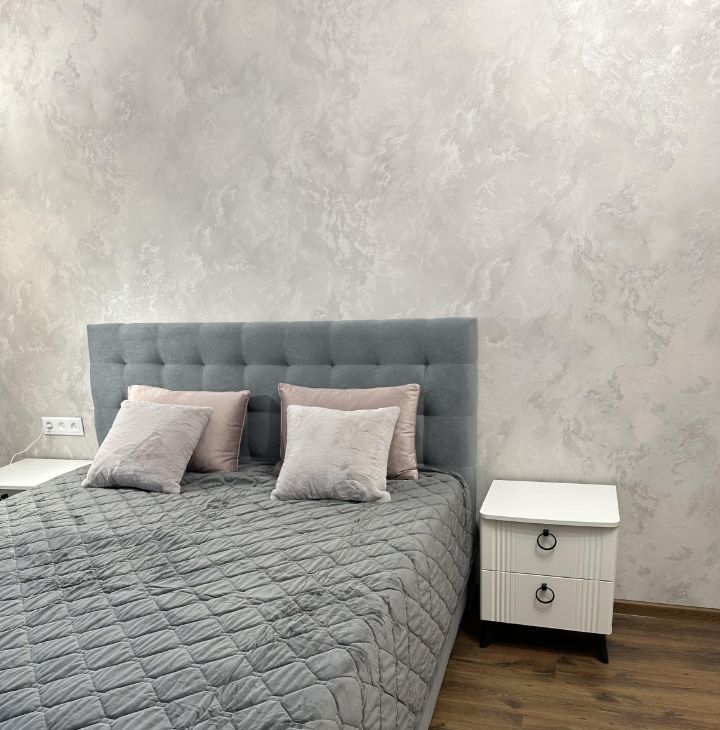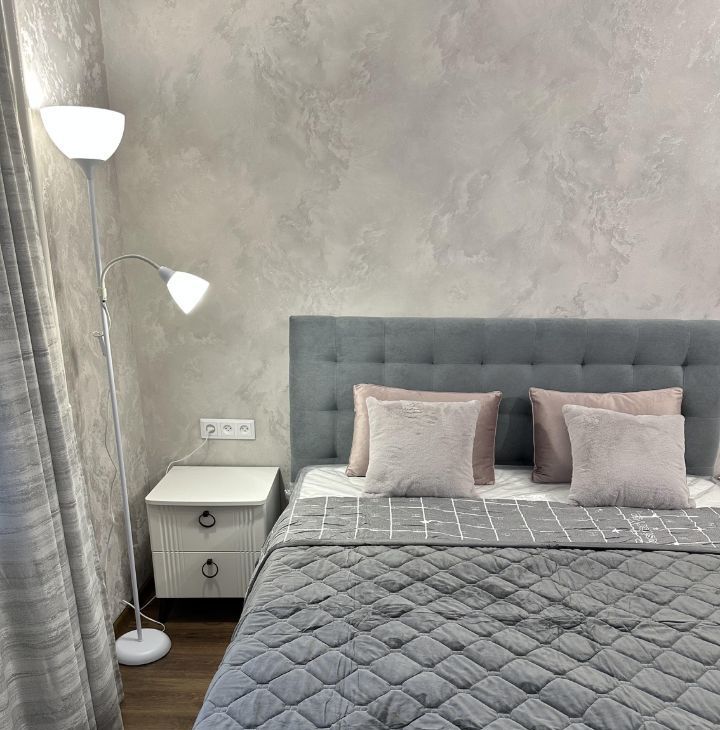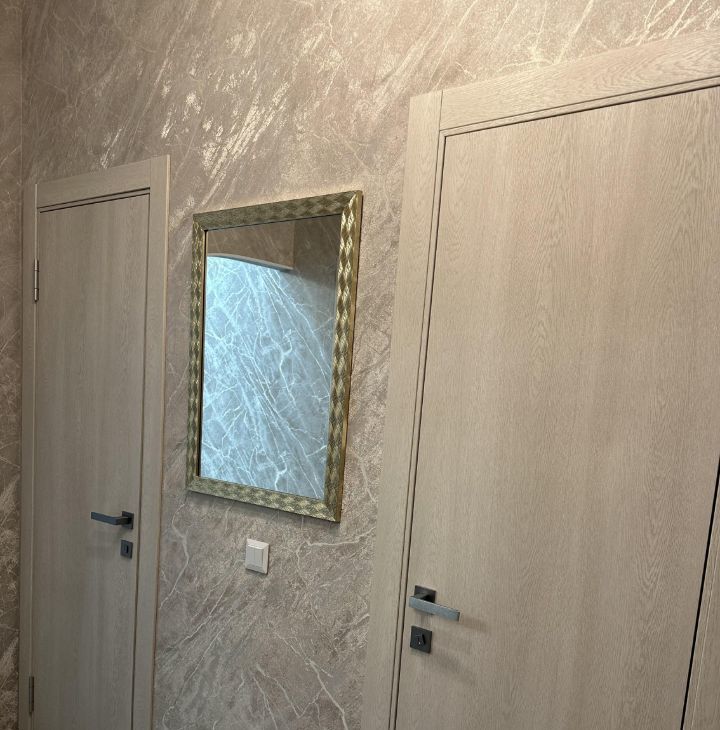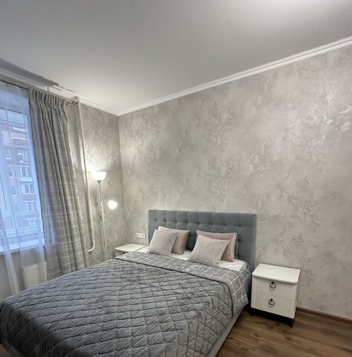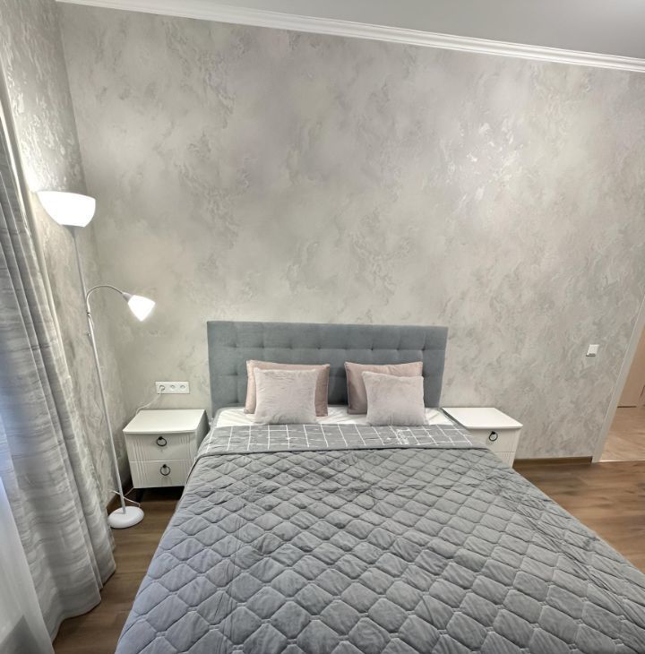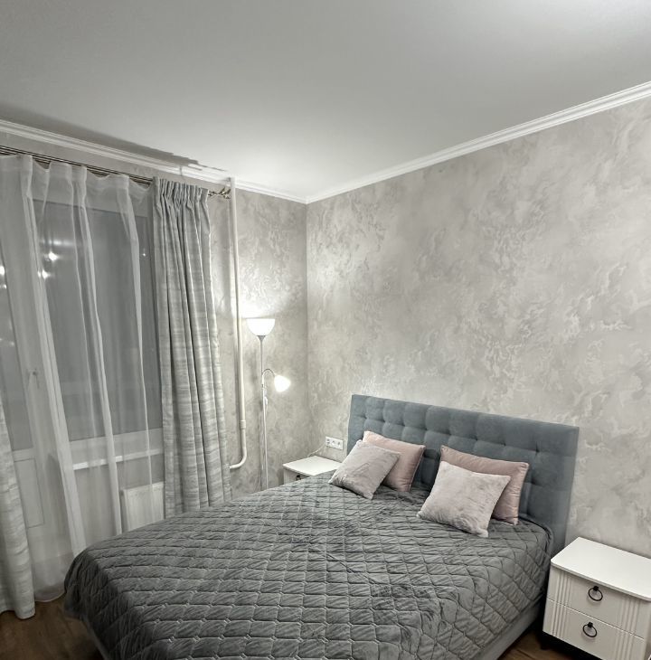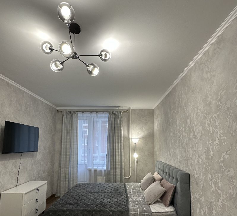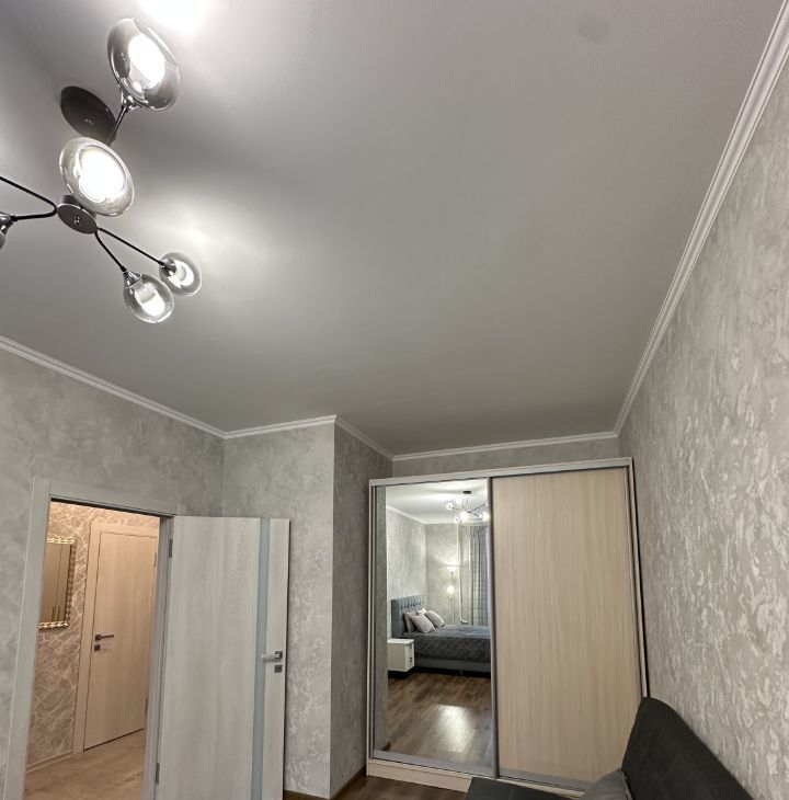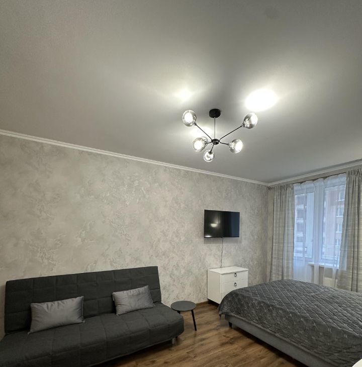 Комната: Кровать двуспальная с подъемным механизмом 160х200 с новым ортопедическим матрасом. Раскладной диван 160х200. Текстиль новый. Большой шкаф-купе, комод и две прикроватные тумбочки. Смарт TV. Застреленный балкон.
