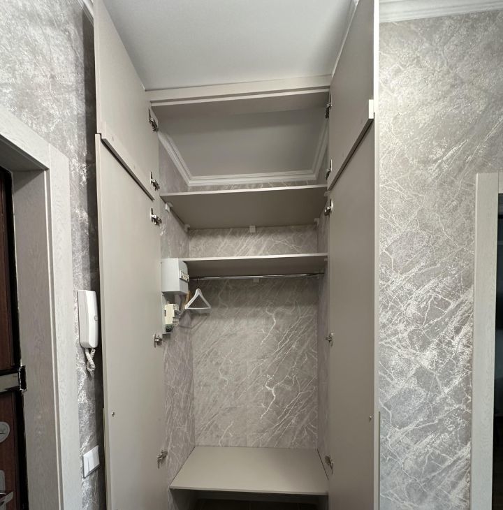 В прихожей вместительный встроенный шкаф. Сушилка для белья и гладильная доска. Санузел раздельный.