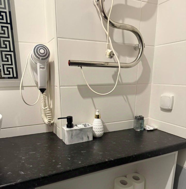 А так же есть утюг, гладильная доска и сушилка для посуды