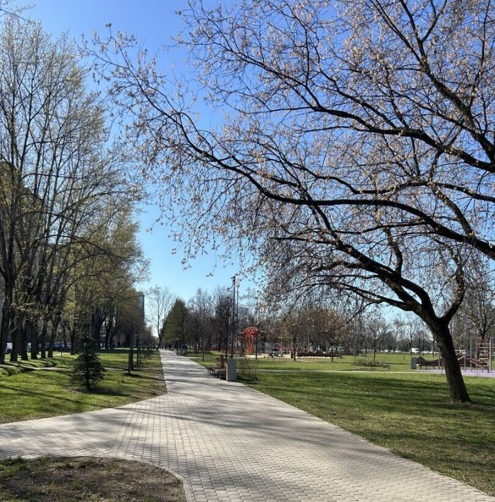 Рядом просторный зеленый сквер- идеальное место для отдыха и прогулок рядом с домом и занятием спортом.