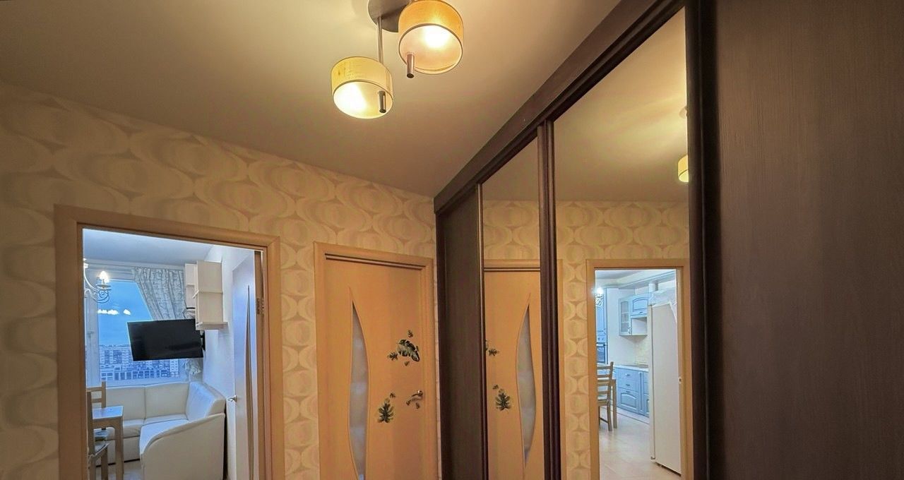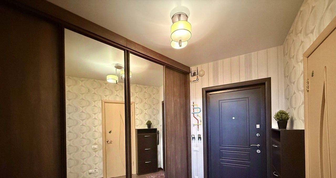 В прихожей шкаф-купе - мечта любой семьи. В подробном видео о квартире он показан с внутренним наполнением.