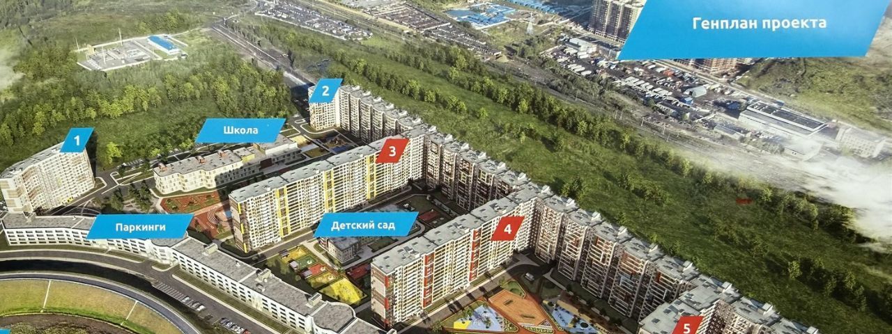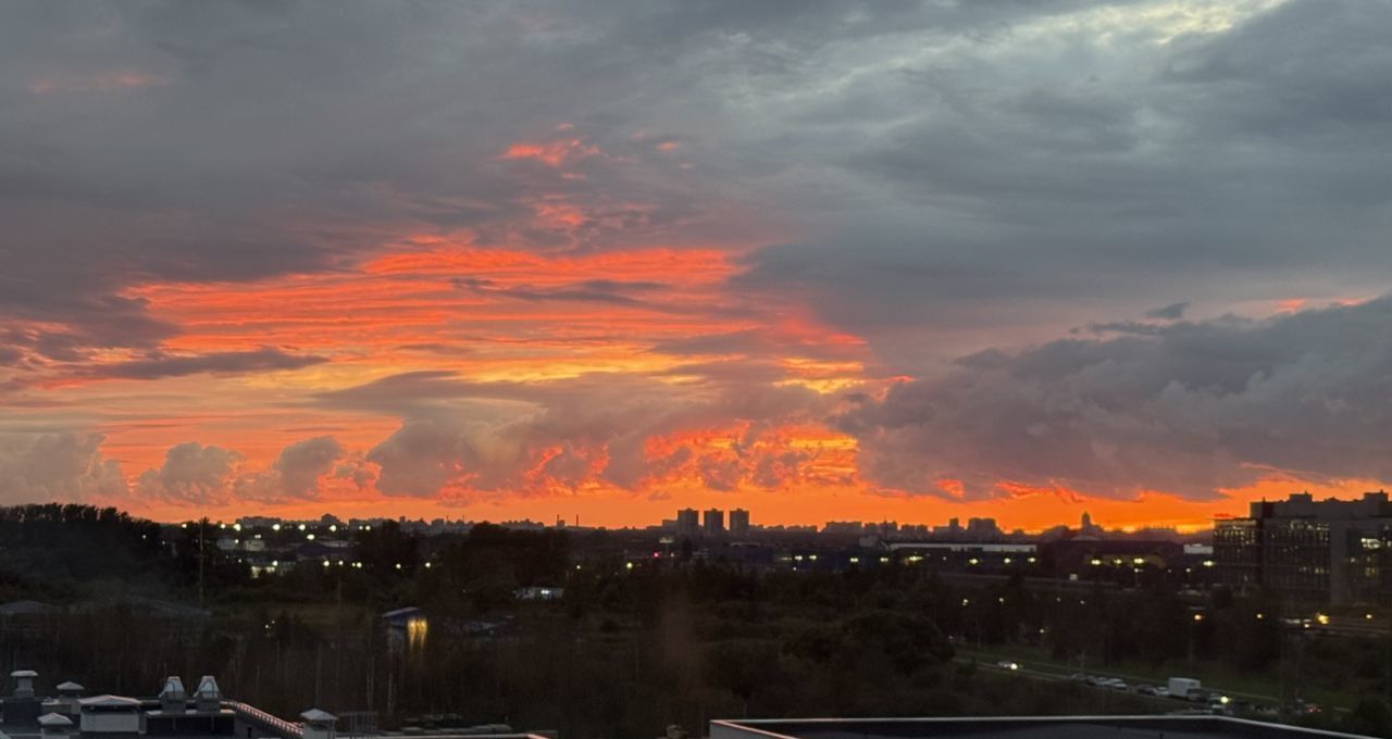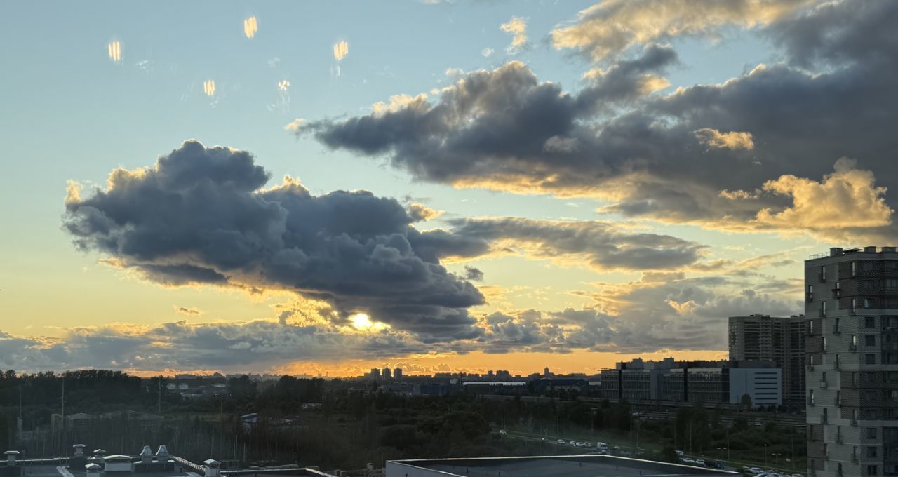 В жилом комплексе есть школа, детский сад, завершается строительство поликлиники. Вид на запад (на школу и закаты).
