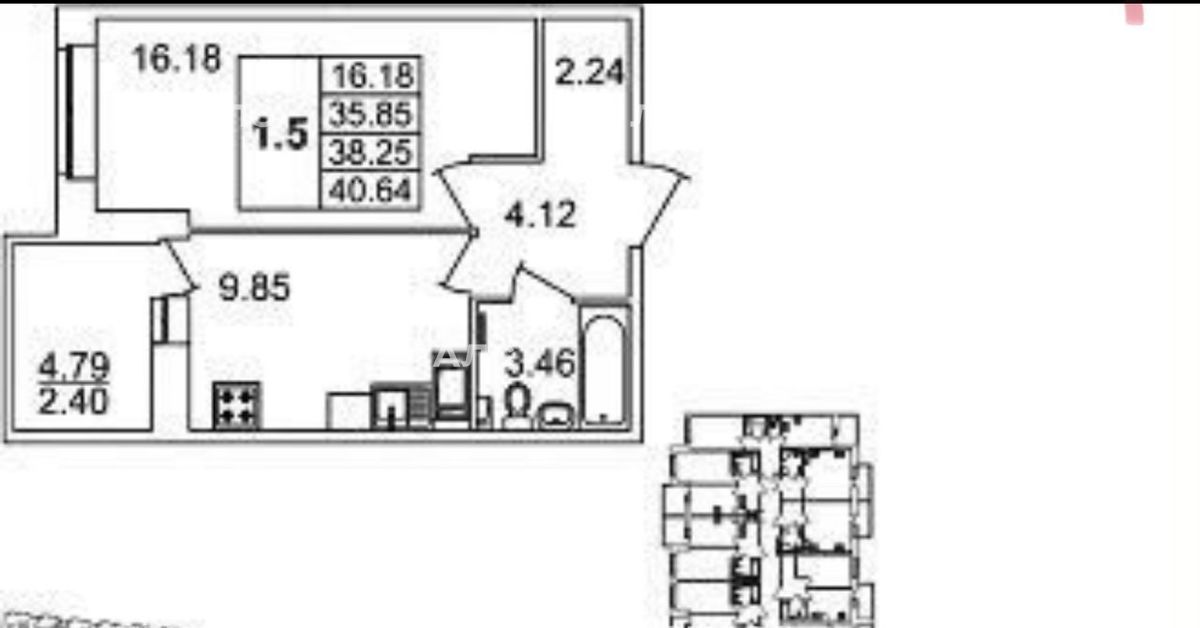1-к кв. Санкт-Петербург Пулковское ш., 42к6 (35.6 м²)
