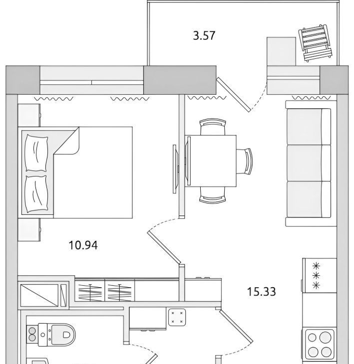 1-к кв. Санкт-Петербург Пулковское ш., 42к6 (38.0 м²)