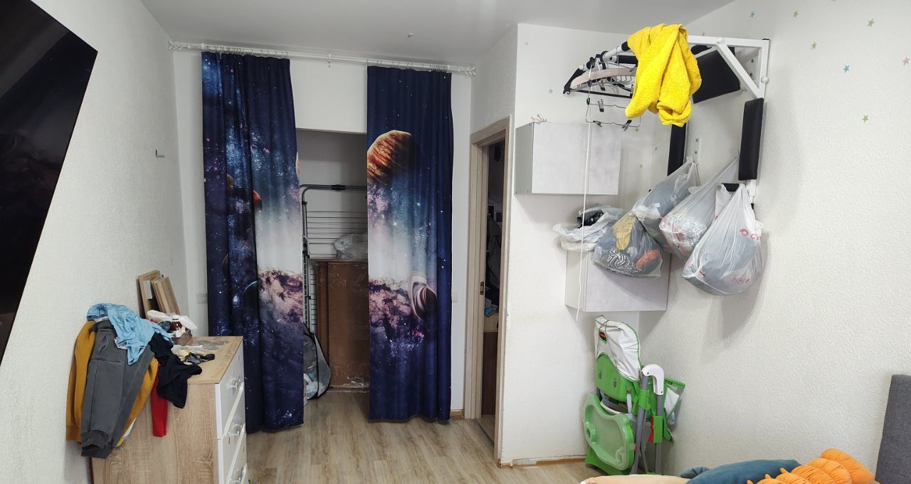 Внутри есть гардеробная, что добавляет удобства в планировке. Санузел совмещенный. Из кухни выход на балкон, где можно наслаждаться свежим воздухом.