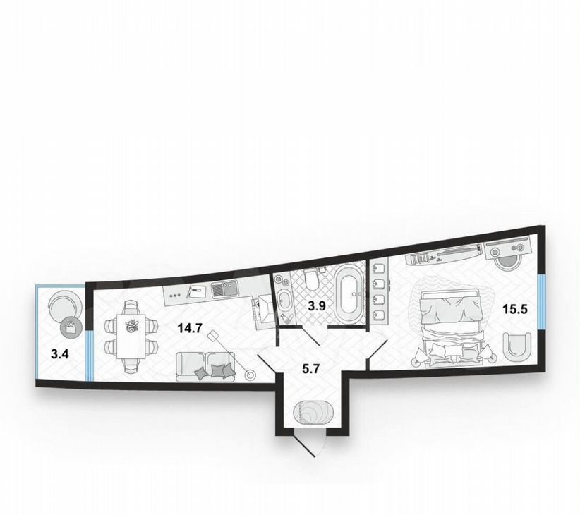 1-комнатная квартира: Санкт-Петербург, Морская набережная, 15к3 (43 м²)