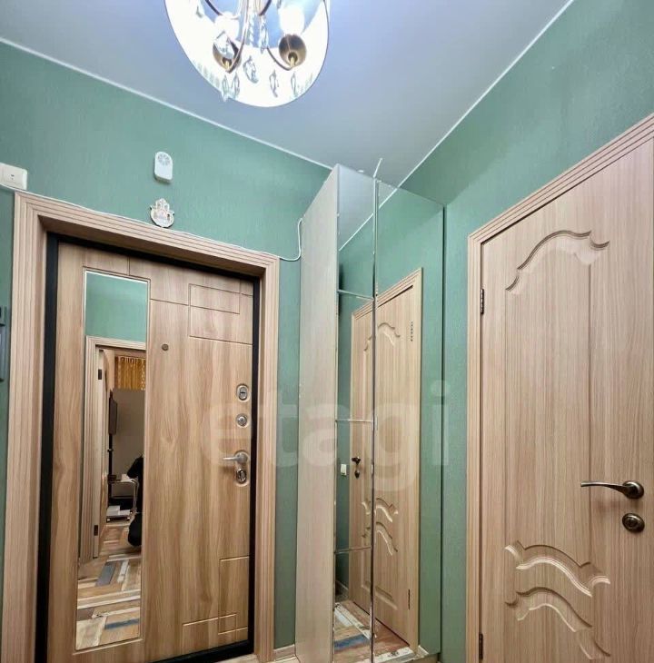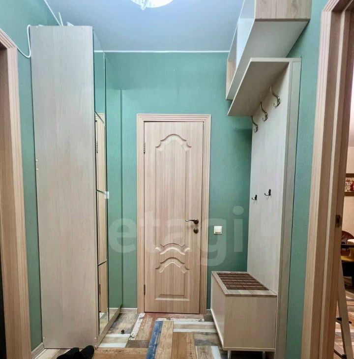 В прихожей расположен вместительный встроенный шкаф для хранения вещей.