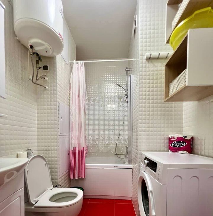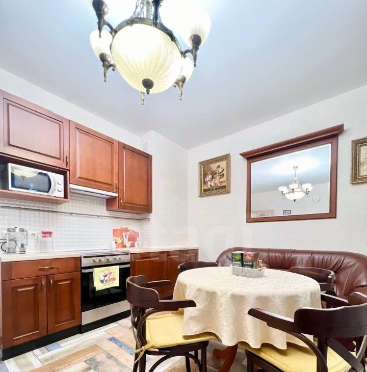 Квартира полностью укомплектована качественной мебелью и всей необходимой бытовой техникой для комфортного проживания, включая посудомоечную машину и кондиционер.