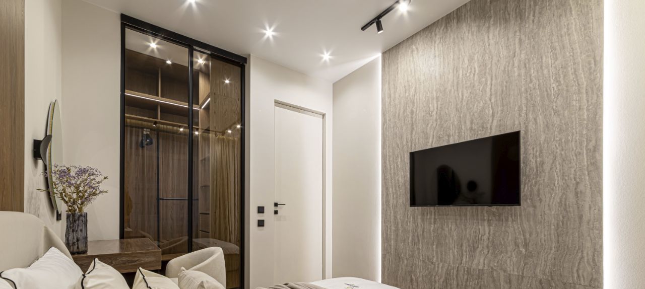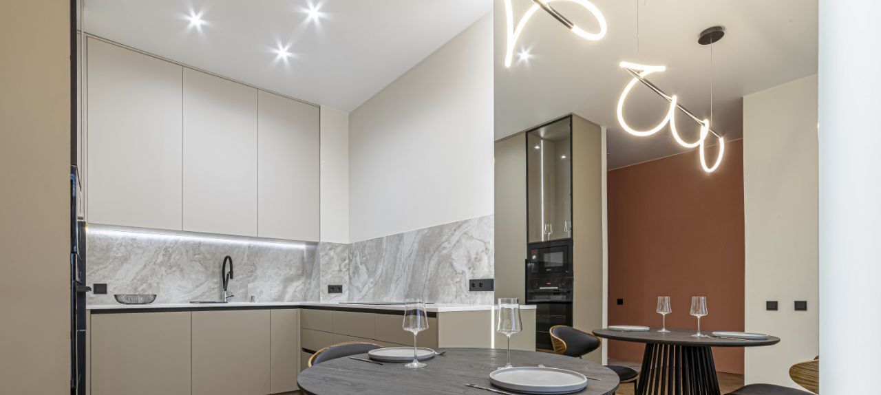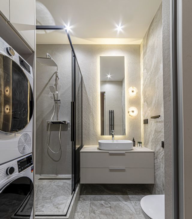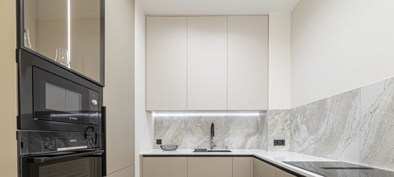 Гардеробная, вместительная кухня, современный санузел с душевой. Квартира полностью укомплектована мебелью и техникой по дизайн-проекту.