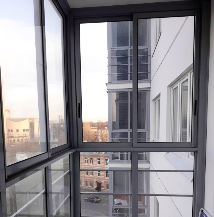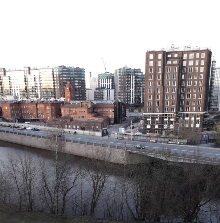 Есть просторная лоджия с панорамным остеклением и видом на реку "Охта".