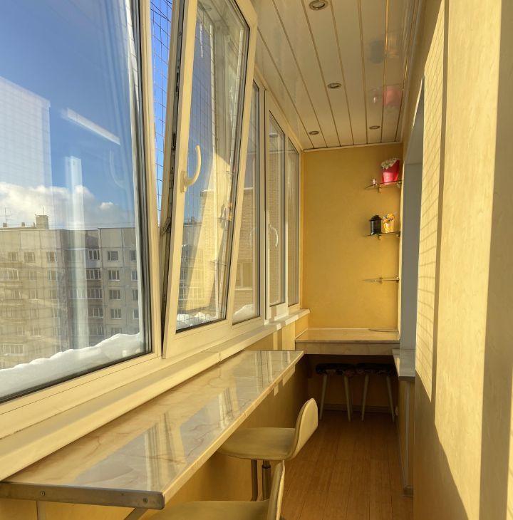 — Застеклённый балкон со столиком и стульями — отличное место для утреннего кофе и вечернего отдыха с видом на город