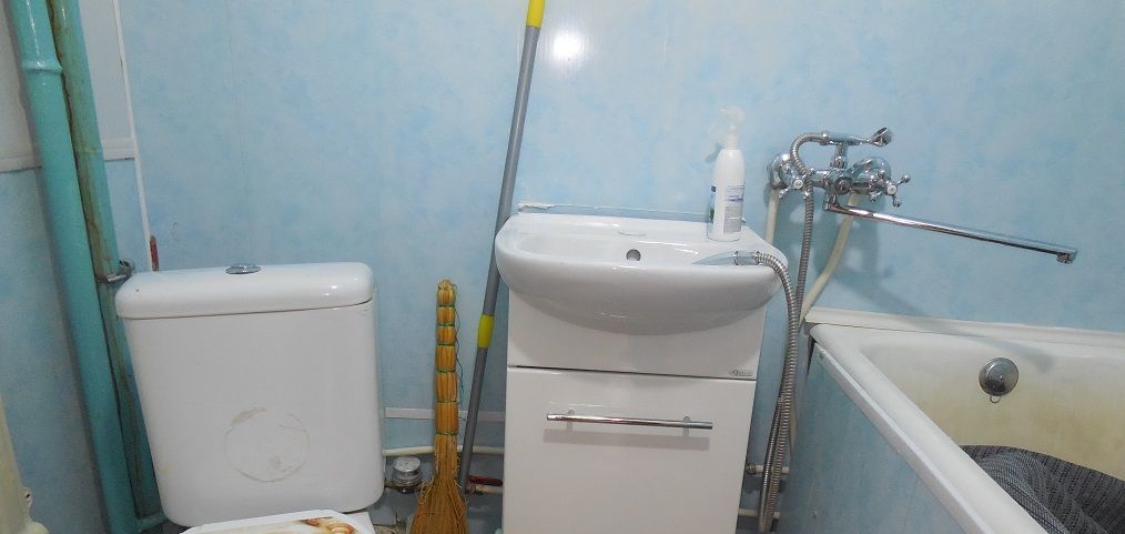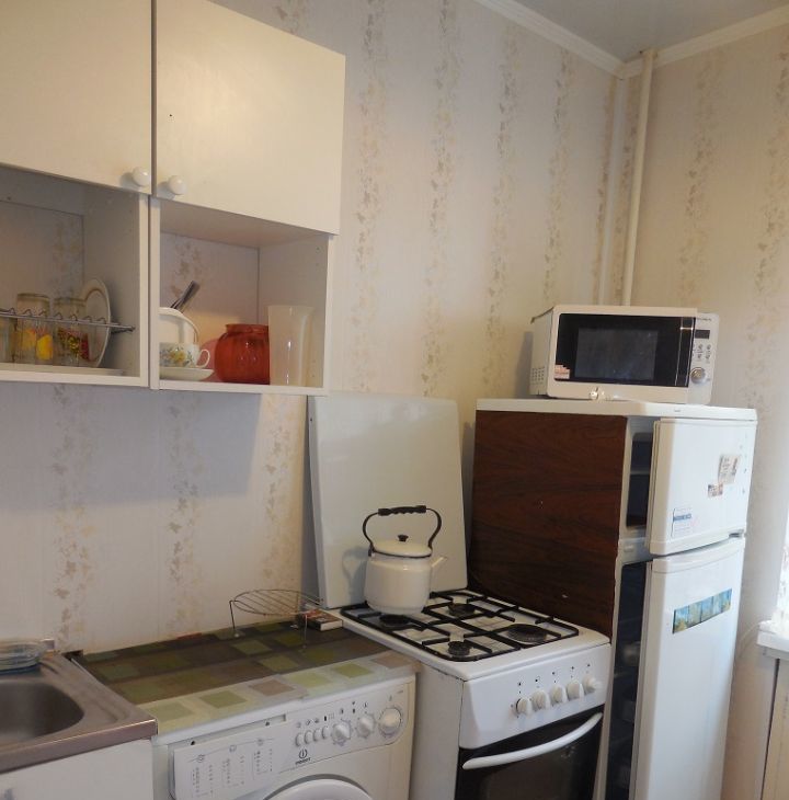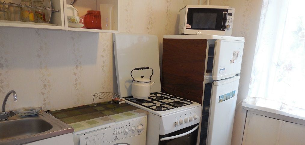 Есть вся необходимая мебель (в комнате диван раскладной и двуспальная кровать, мебельная стенка, тумба под тв, кухонная мебель, газовая плита; бытовая техника - стиральная машина- автомат, телевизор, холодильник, микроволновая печь).