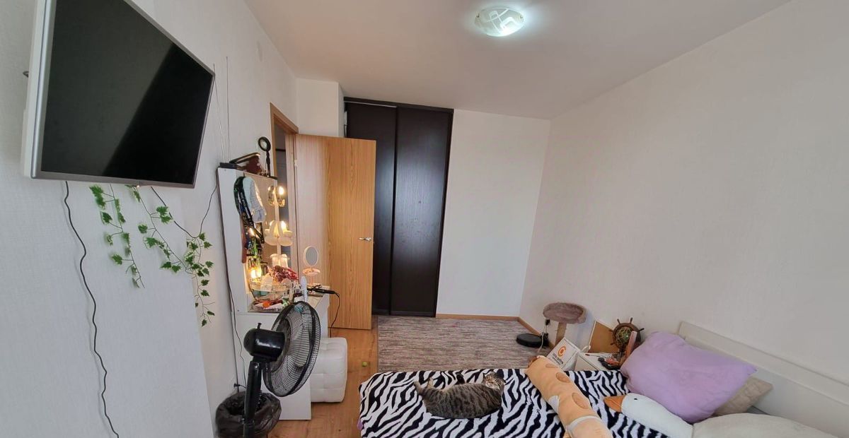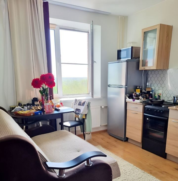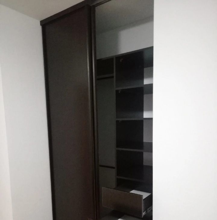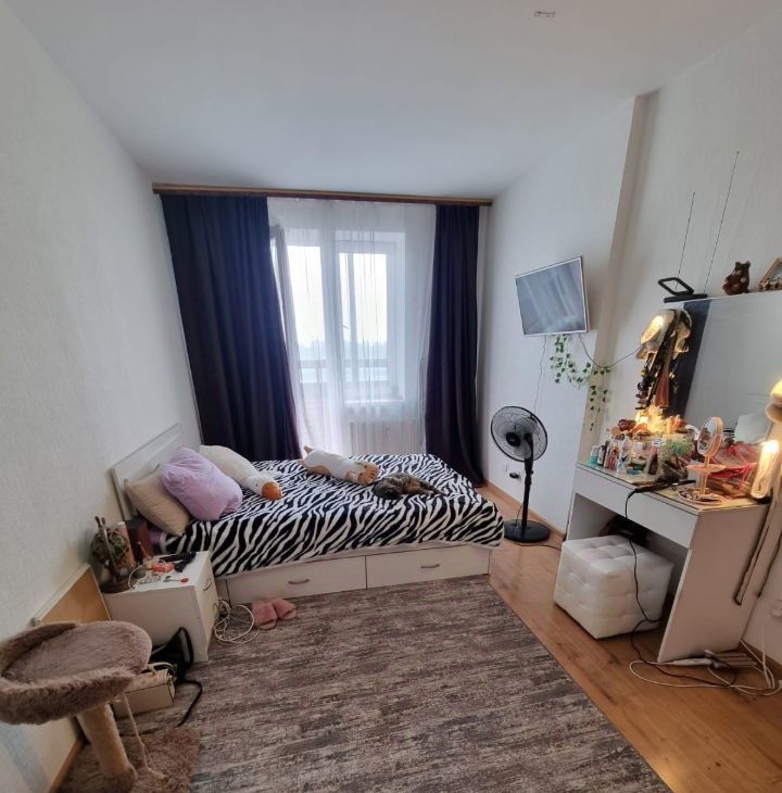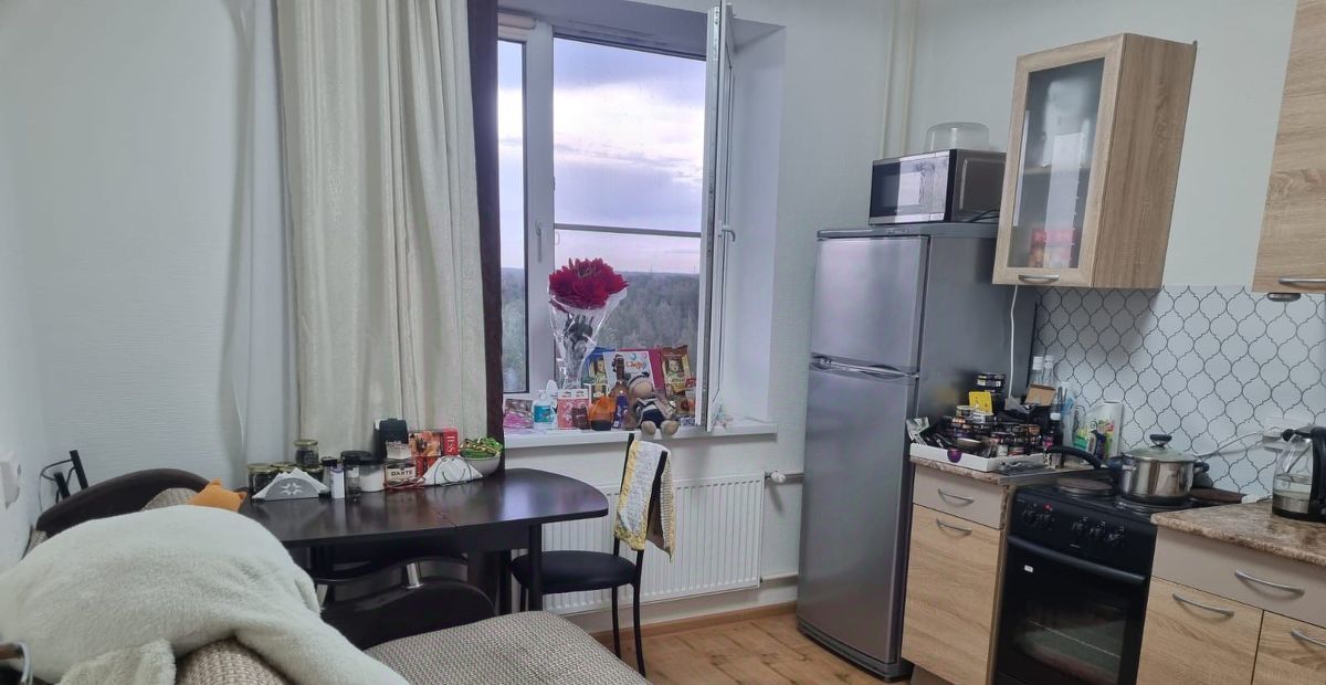 В квартире вместительный встроенный шкаф, дорогая входная дверь с прекрасной шумоизоляцией, вид на лес, по утрам поют птички, солнце с утра, новая кухня, диван раскладной на заказ (но котик его полюбил и есть нюанс) он остается как и кухня, кровать, с местом для хранения вещей, большой встроенный в нишу стильный вместительный шкаф купе, кухонный стол.