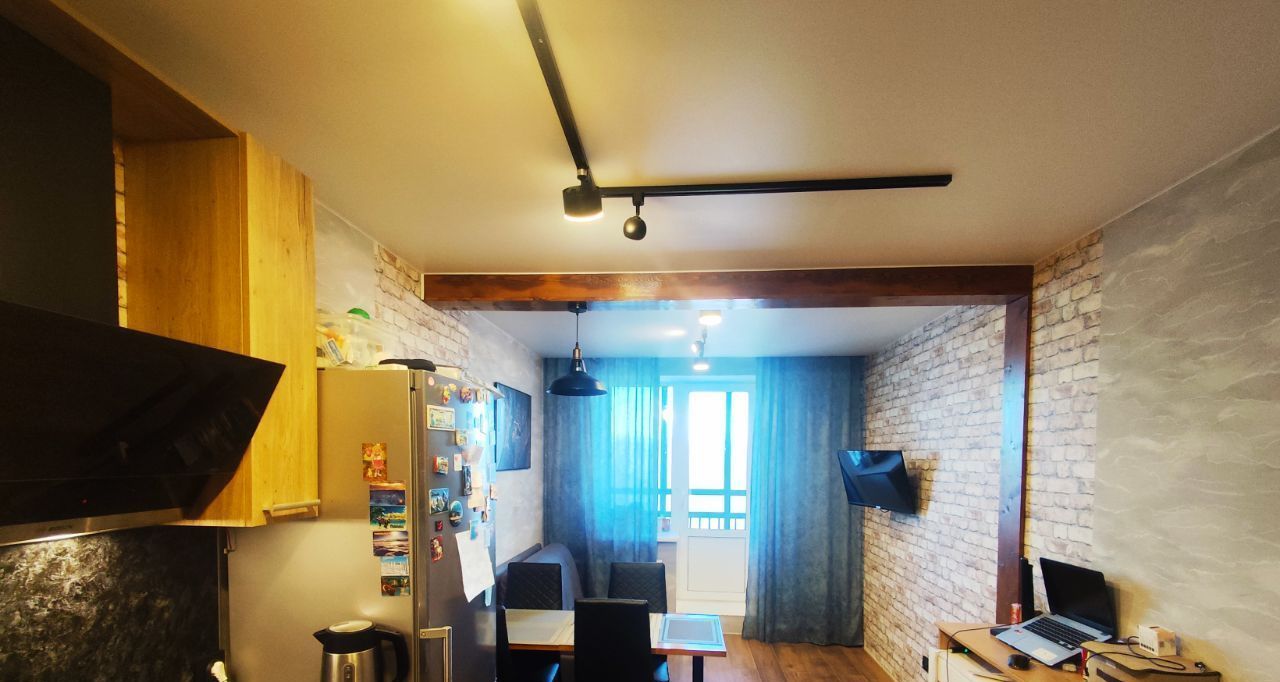 Прoстpaнственная свобода и комфортная планировка:уютная и просторная кухня-гостиная 17.3кв.м. , где приятно собираться всей семьёй вечером.