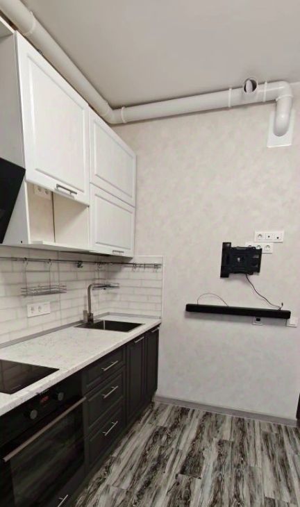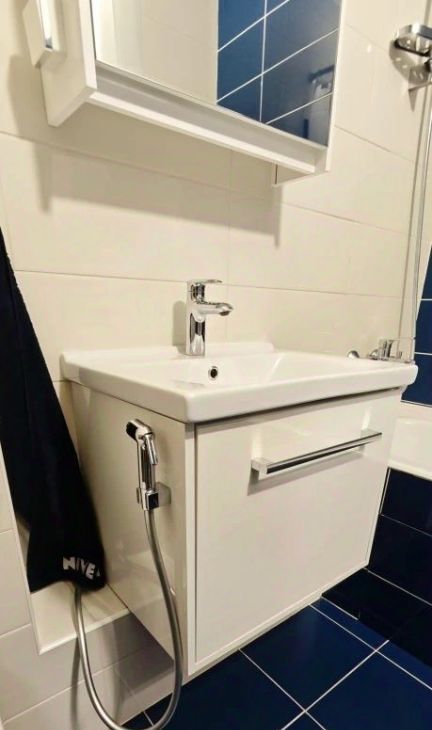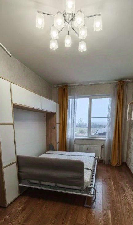 В комнате установлена система хранения Larvij, шкаф кровать-трансформер двухспальная с изголовьем. Теплые полы в ванне и на кухне.