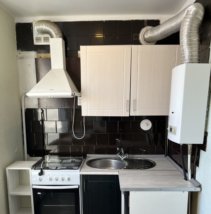 Кухня оборудована всем необходимым: газовой плитой, холодильником, кухонный стол.