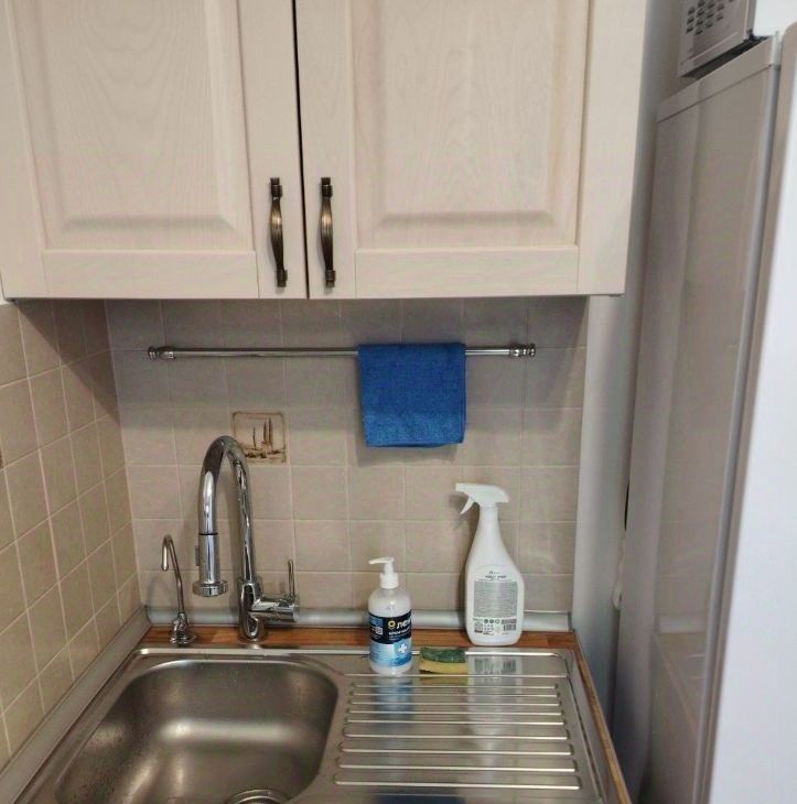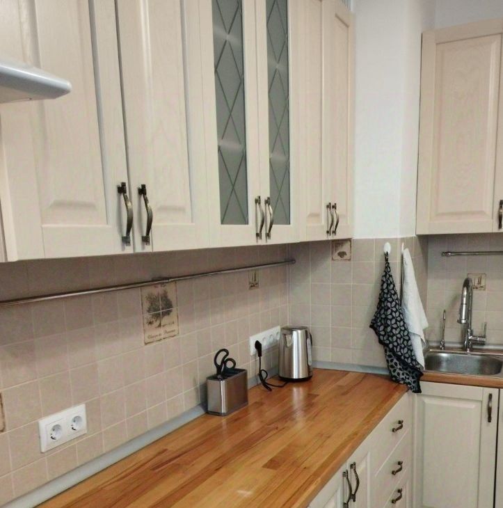 Просторная кухня со спальным местом (диван выкатной) почти 12 метров. В наличии: новые холодильник, микроволновка, эл. плита, чайник, стиральная машинка. фасады кухни - массив березы, очистка воды встроенная, посуда при необходимости.