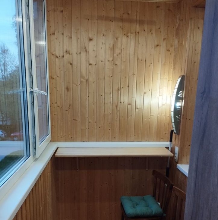 Ванная новая чугун, вся мебель свежая, в комнате 3 спальных места - диван (140 см шириной, аккордеон), кресло-кровать Икеа, места хранения Икеа Пакс, телевизор, интернет, просторная лоджия с розетками и светом, отделанная деревом, на которой можно как работать, так и отдыхать. Окна во двор, солнце утром. В доме своя котельная, низкие коммунальные платежи.