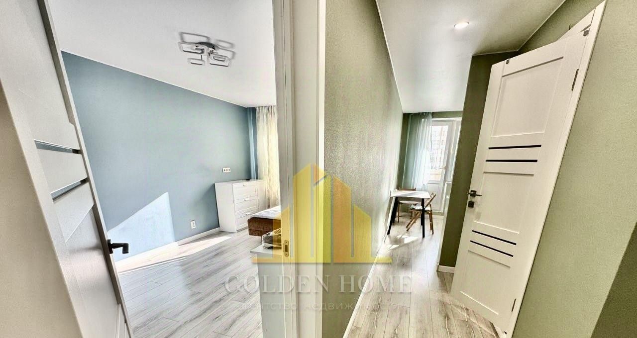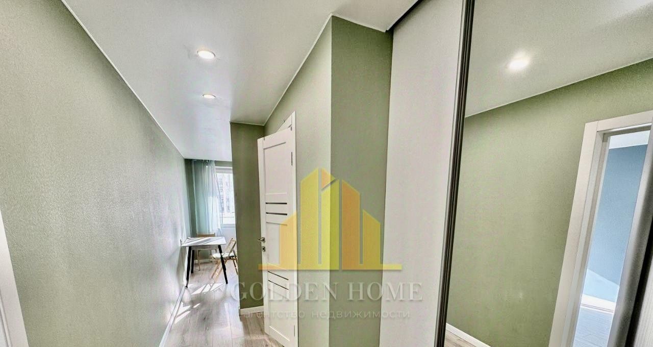 Продуманная планировка: просторная комната (есть диван-кровать), отдельная гардеробная, совмещенный санузел.