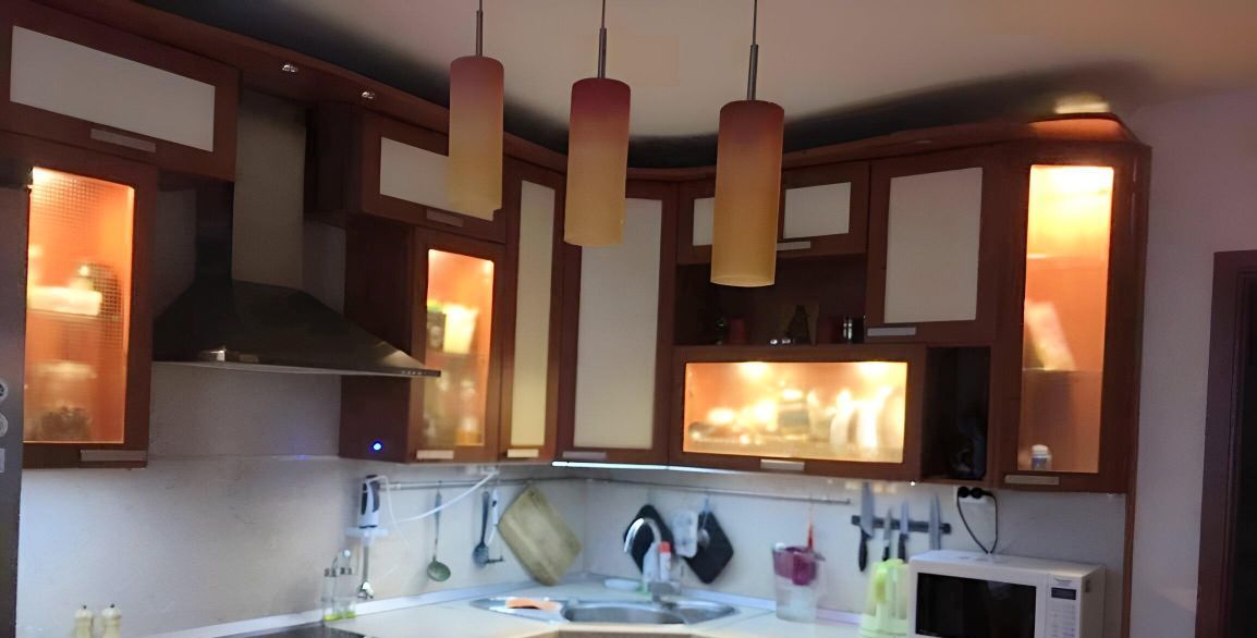 В квартире много света,а также выполнено дизайнерское искусственное освещение.