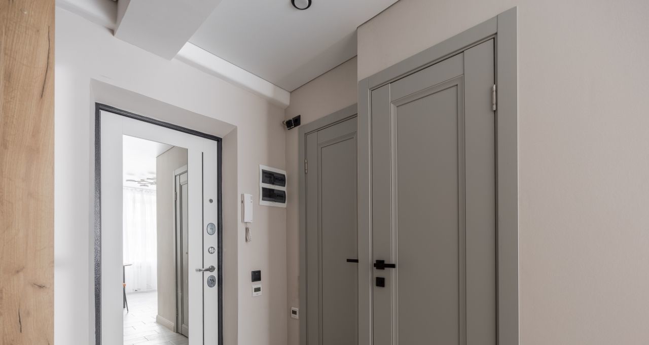 В комнате на полу ламинат 33 класса, в остальной части квартиры керамогранит + установлен теплый пол с электронными датчиками температуры. Стены окрашены моющейся краской премиум класса. Новые межкомнатные и входная двери.