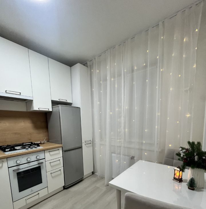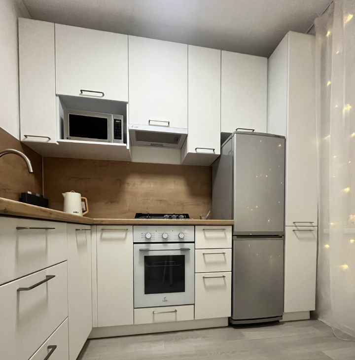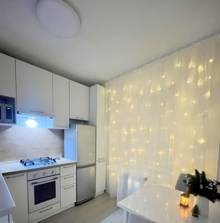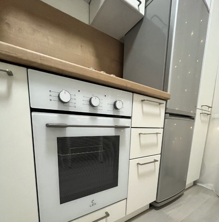 Кухня оснащена новой качественной встроенной современной мебелью и техникой. Газовая плита с электроподжигом,духовой шкаф, мойка- все практически новое в прекрасном состоянии. Кухонная мебель очень красивая, удобная, функциональная и продуманная до мелочей, тоже останется новым собственникам. На кухне установлен тёплый пол, напольное покрытие - керамогранит.