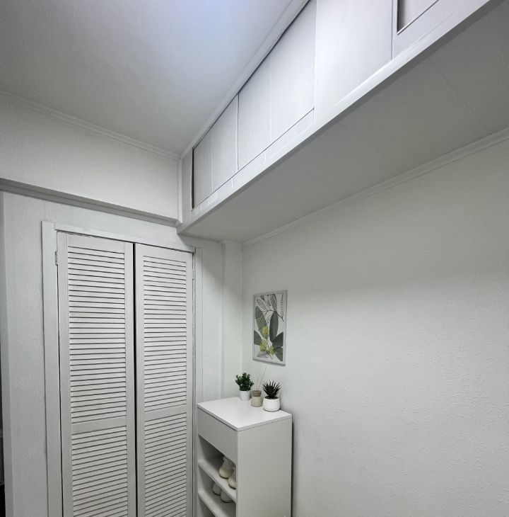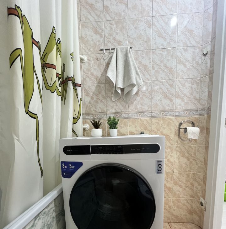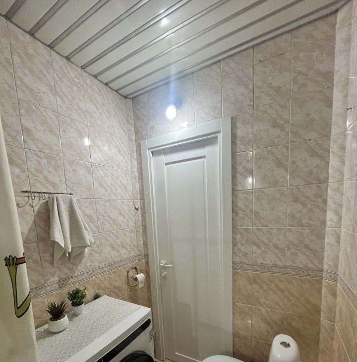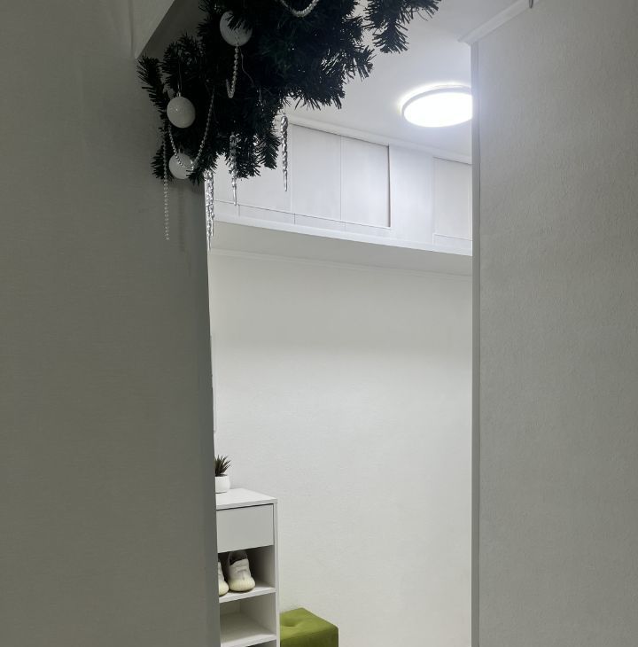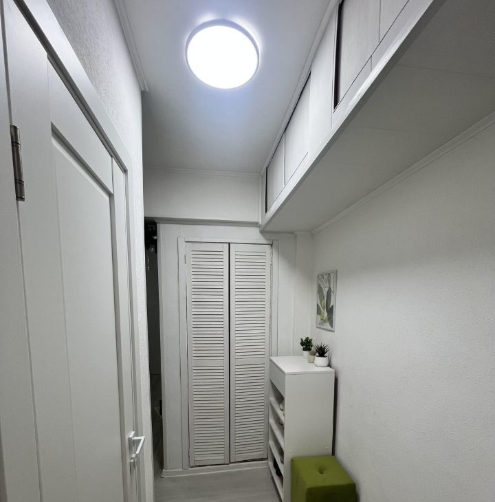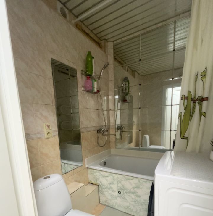 В коридоре имеется большой встроенный вместительный шкаф и антресоли. На полу ламинат (33 класс). Мест для хранения предостаточно,что очень важно и удобно! Ванная комната выложена керамической плиткой и зеркалами.