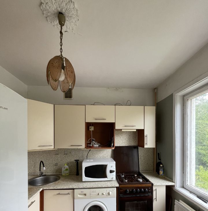 Необходимый минимум мебели, новая стиральная машина, микроволновка, плита с духовкой, новый холодильник. Часть сантехники и трубы новые. Все окна на зеленый двор + балкон, много света. Чистый подъезд, ухоженный двор.
